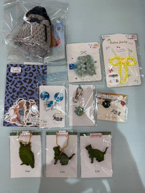 キーホルダー、編みぐるみ、ステッカー