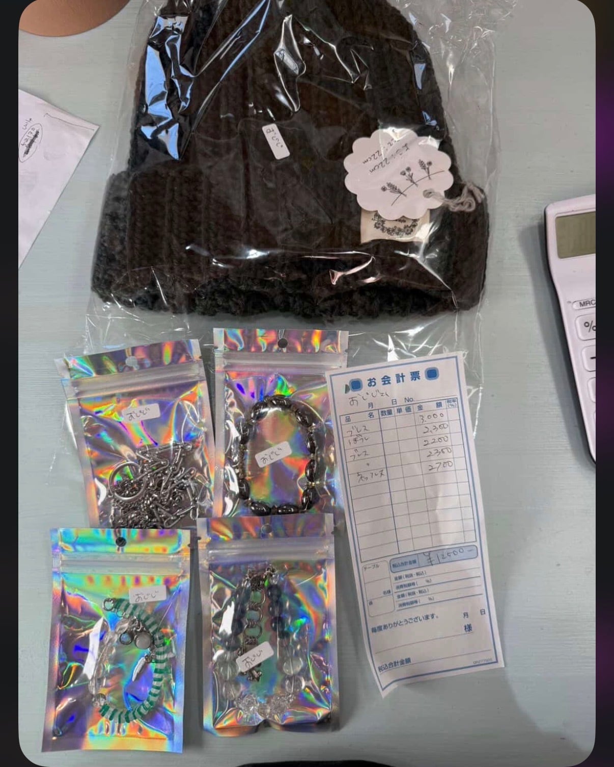 ニット帽、ネックレス、ブレスレット3本