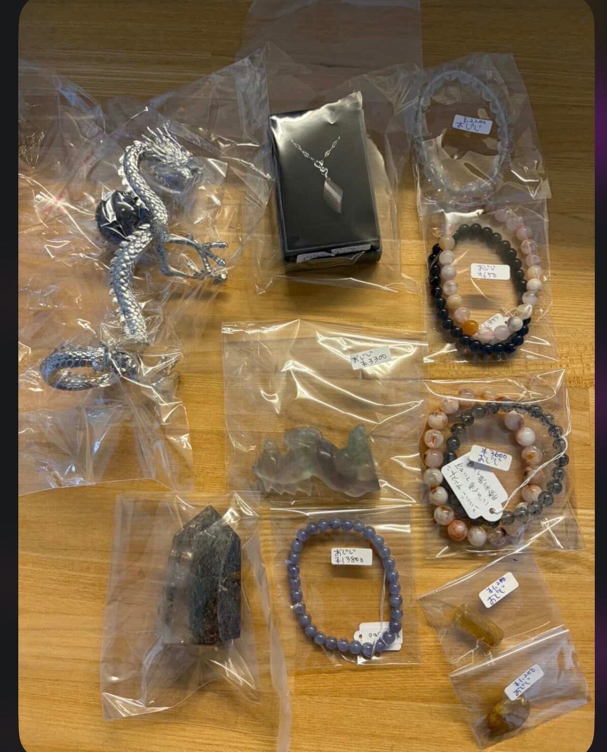 ガーデンクォーツ六角柱、ユニコーン、タンザナイトブレス、ゴールドルチル二つ、ヒマラヤ水晶、ブレス二本セット二つ