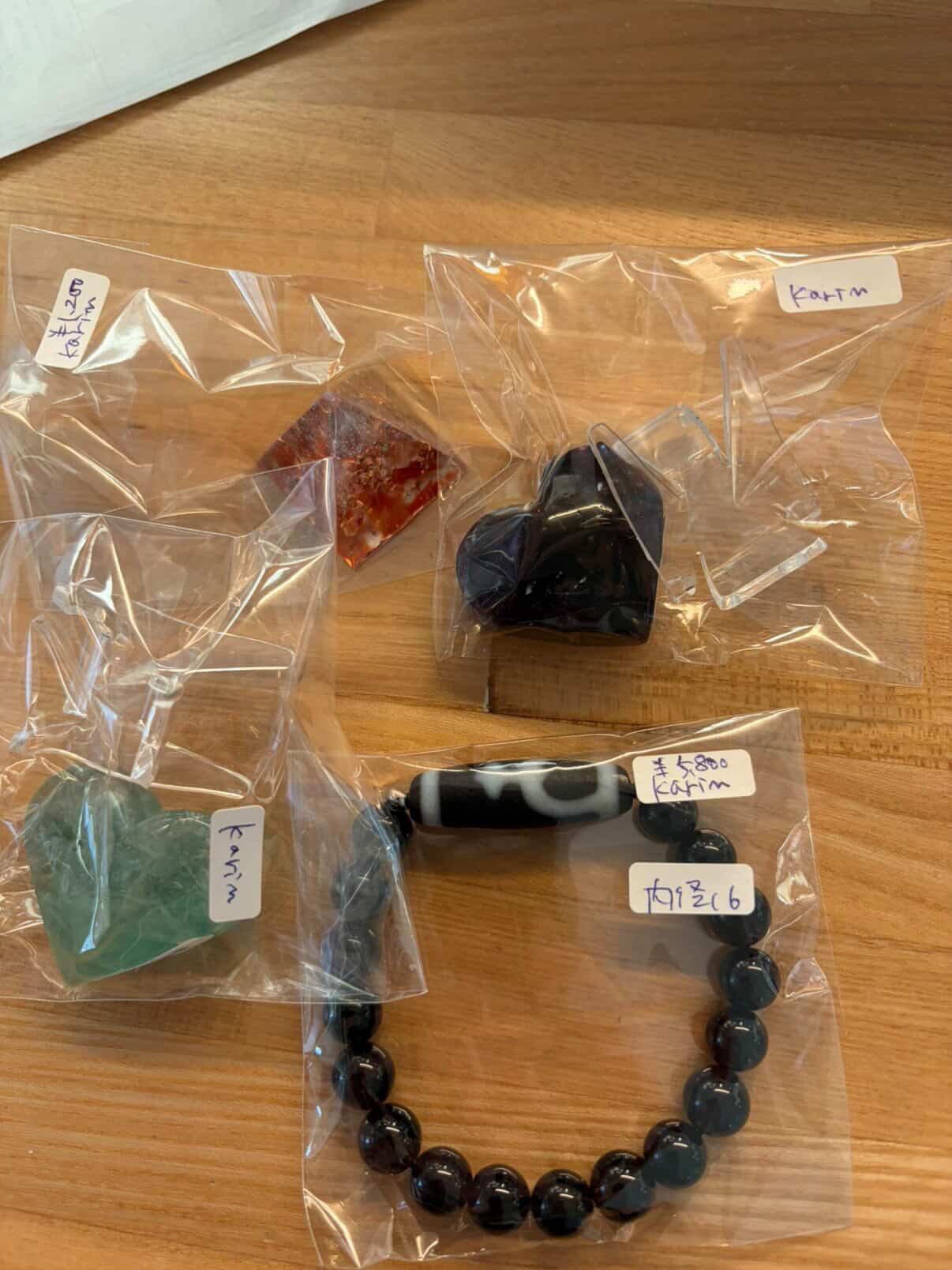 シール帳、資材、天珠ブレス、フローライトハート、オルゴナイト