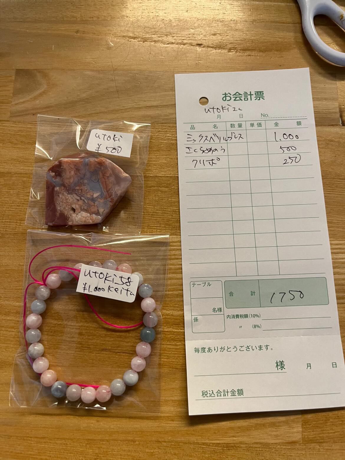 原石、ブレスレット